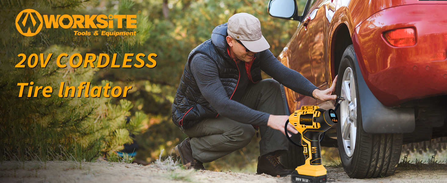 ✔【Versatile and Powerful】The WORKSITE Cordless Inflator Air Compressor offers dual power options (20V battery and 12V DC plug-in) for inflating car, motorcycle, bicycle tires, sports balls, and pool toys anywhere.